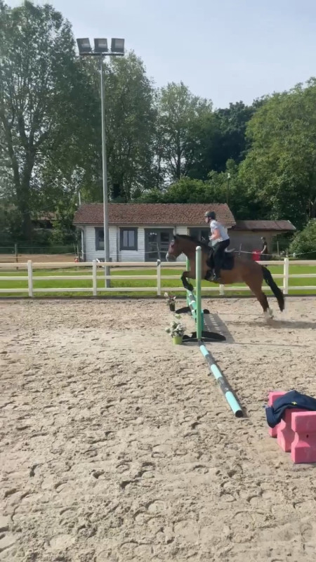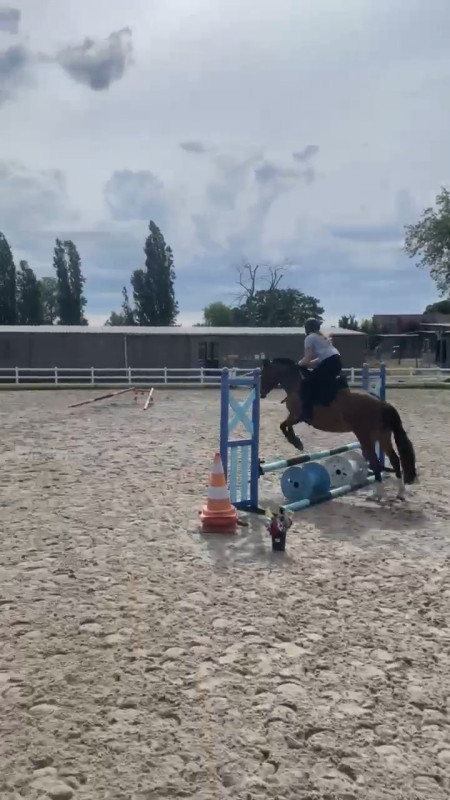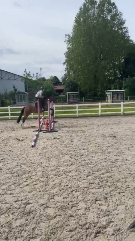 Au début nous avons détendu sur des barres au sol avec variations de foulées au galop. Puis nous avons fait quelques passages sur un double a 8 foulées pour ma part. Puis quelques sauts de biais , une première pour nous deux , nickel. La pointe nous a causé un refus mais nous l'avons ensuite très bien sauté d'avoir au trot puis au galop. Puis après enchaînement avec ajout d'un saut de puce. Vraiment très très bien. Beaucoup de plaisir pour nous deux et une ponette qui a bien plu malgré son manque de métier et pour ma part j'ai réussi a être a la hauteur de l'exercice malgré le fait que je n'ai quasi jamais sauter avec ma jument ni encore moins enchaîné et que je n'ai pas sauté réellement depuis dix ans. A la fin la ponette était un peu cuite donc des sauts moins fluides mais un résultat hyper positif !