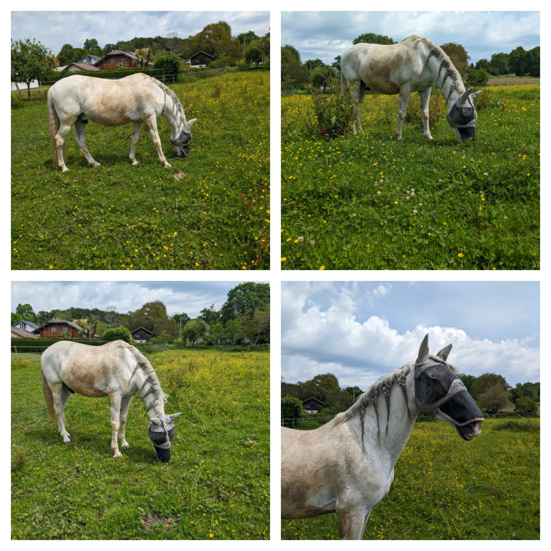 Par contre il se déplaçait comme s'il en avait toujours eu, nickel chrome ! Trotting le samedi mais je ne monte pas encore à cause de mon dos.