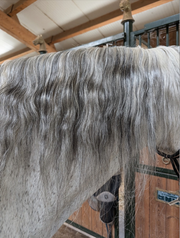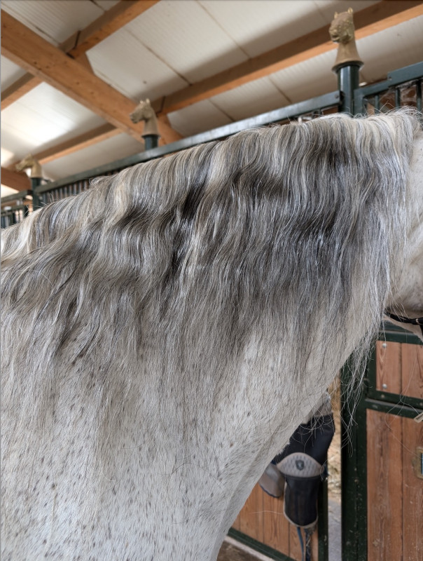 Début du nouveau protocole de soins des crins pour Zouzou aujourd'hui !