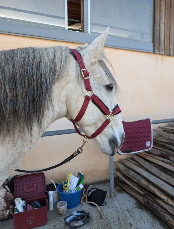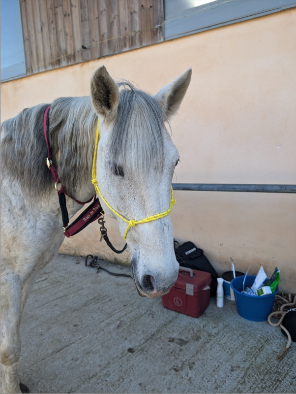 De mon côté retour sur notre rendez vous en clinique. Rien de dramatique mais Ponette a de légères lésions type ulcère. On part donc sur 3 semaines de gastroguard pour prendre le problème à la racine et traiter au plus tôt . Ensuite ce sera du gastricalm quand je monte ou en période de stress. On retire également toutes les céréales / bonbons fruits etc . Il faudra donc que je me tourne vers des compléments liquides pour elle. Niveau ovaires on a celui de gauche qui est assez gros mais visiblement en fin de cycle. Pas de kystes rien . Le plus embêtant dans l’histoire c’est sa plaie au glome qui nous laisse à l’arrêt le temps que ça cicatrise car mal placée . En somme je suis contente d’avoir fait tout ça, comme ça je suis rassurée. On a donc supprimé les grains en écurie active , laissé juste les cmv. Il aurait fallut les supprimer aussi mais elle en a très très peu donc bon . Et j’avais demandé à la gérante de limiter le foin mais en fait elle l’avait beaucoup trop limité ! Seulement 200 minutes au distributeur par jour et pas d’accès au râtelier. J’ai bien fait d’aborder le sujet du coup car ça , ça n’a clairement pas aidé ses ulcères et ses humeurs.