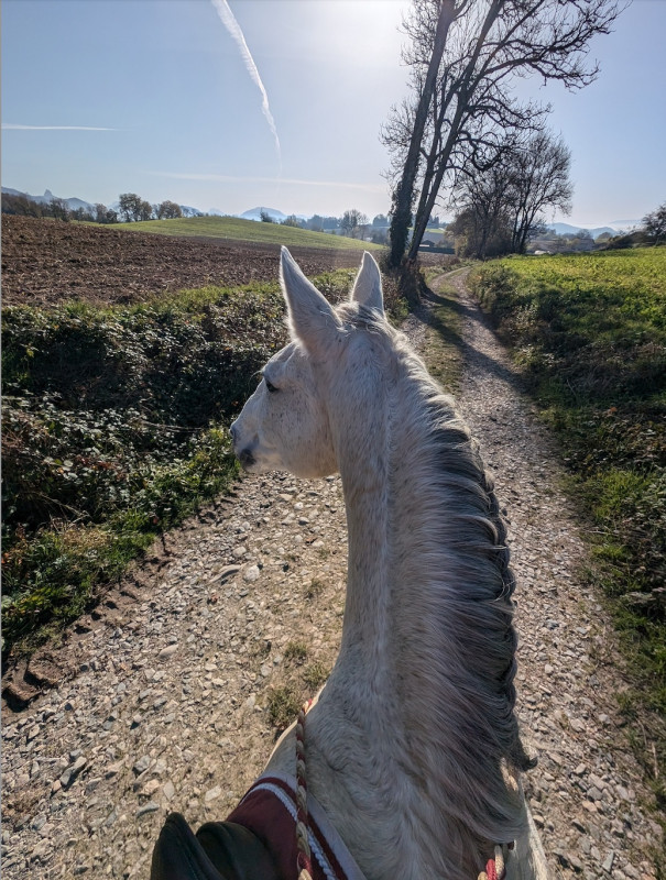 La cheville semble tenir le coup, on a pas mal trotté et galopé, bon pour la préserver quand même, je suis restée sans étriers au pas et aussi un peu au trot mode mise en selle ^^