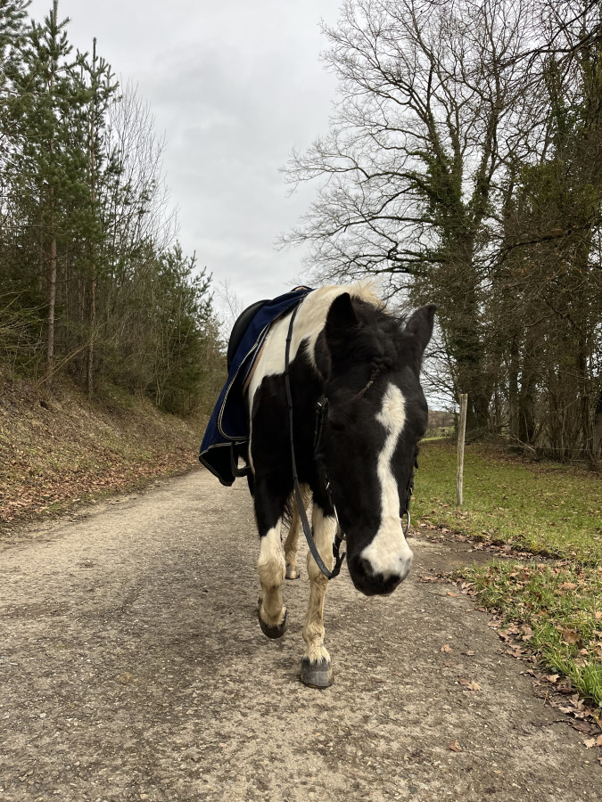 Nous de notre côté séance de plat hier sur les variations d amplitude. bon ponette pas top je le sens bloquée depuis un moment et moi j ai mal à gauche dans la hanche et je penche à droite (faut dire que j arrive plus à la plier à gauche non plus) . J ai pu monter avec ma selle d obstacle qui est restée plus ou moins en place mais comme ponette plonge en avant en ce moment, que je suis mal positionnée bah elle a avancé je dois changer l arcade car la noire non c est pas possible . Ce qui me rassure c est qu en ce moment ça faisait pareil avec la mixte aussi . J avais décidé de ne mettre qu un réhausseur avant et bien je vais repartir sur mon amortisseur complet avec la rehausse avant depuis que je le met plus je pense que c est pire . En attendant qu’on voit l osteo je vais rester à pied . Je vais juste retenter la selle avec les modifications et après on attendra car ponette me fait la tête qui plus est quand je dois seller (peu importe la selle) donc quelque chose ne va pas c est certain . Ça nous fera du bien de se retrouver un peu à pied. Pendant les vacances elle en fera que deux balades en compagnie d’une jeune fille de l’écurie et ça sera très bien après stop on prend un peu de repos .