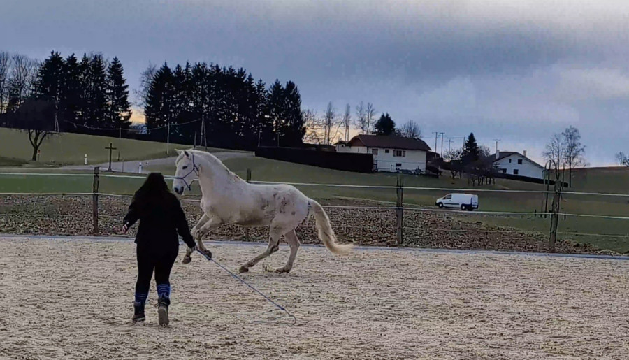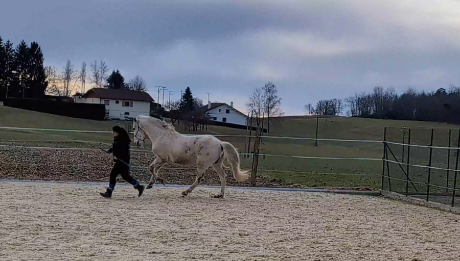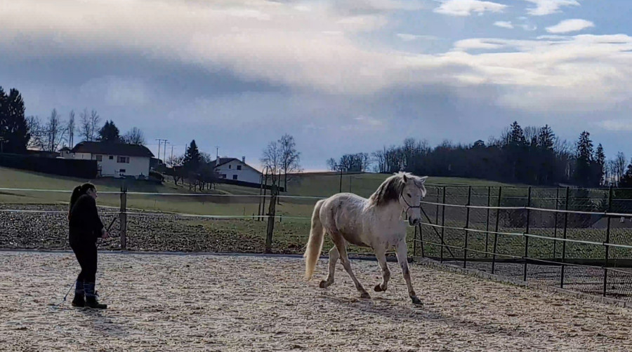 Bon que au pas et au tout petit peu de trot car carrière encore bien gelée