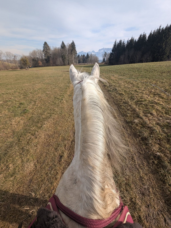Car en voulant remettre mes bottes, elles ne me vont plus ! ni mes classiques, ni mes De niro de dressage. J'ai monté avec mes Moutain Horse d'hiver bien épaisses.