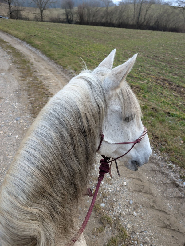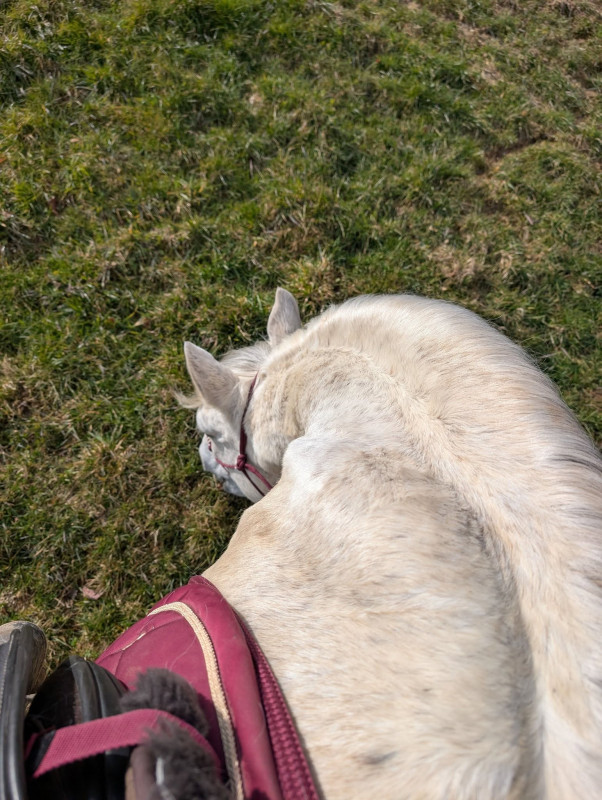 Hier super séance avec ponette ! Pas de cours avec les vacances donc j’ai bossé la mise sur la main enfin les débuts . Comme je déteste faire céder par pression vers le bas ou bidouiller dans les doigts , je m’en suis remise à la technique de l’école de légèreté que je trouve très bien avec la technique d’une main au garrot et l’autre qui se lève pour faire céder la mâchoire et la nuque par effet de lévier on va dire et les résultats étaient top sans avoir à forcer ou bidouiller et en restant bien dans le main sans jambes car moi placer un cheval en gardant les jambes enfoncées dedans je sais pas faire .