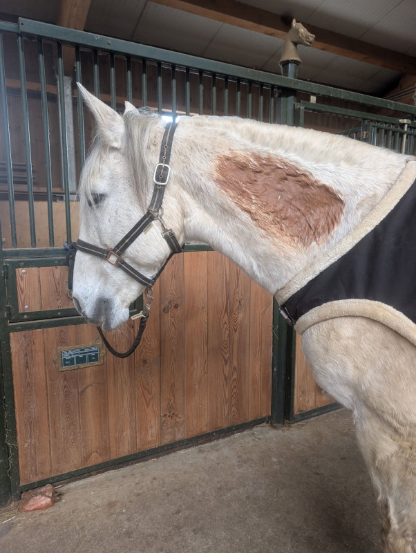 Au retour je lui ai quand même mis de l'argile rouge au sel d'Epsom (top pour les muscles) sur l'encolure côté injection !