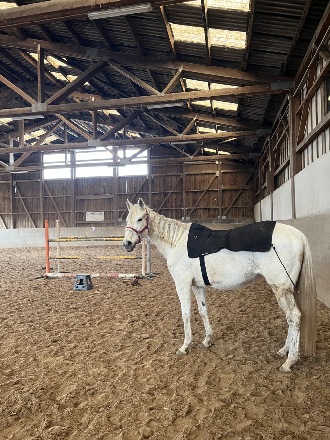 J'ai trouvé une selle qui lui va presque nickel, sauf un petit détails des matelassures qui ont une épaisseur pour combler les creux d'un garrot d'un autre cheval.