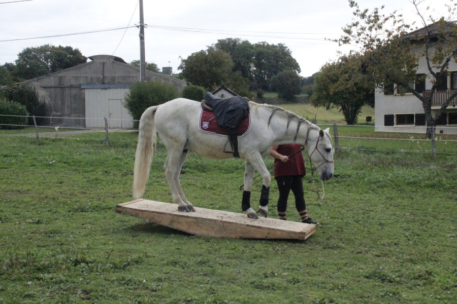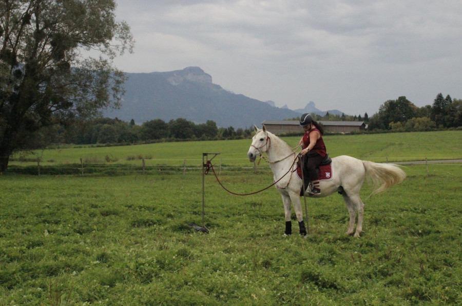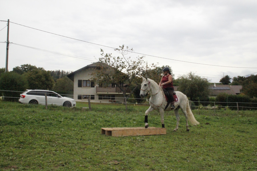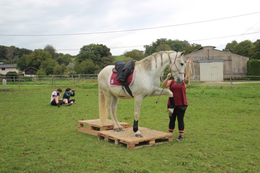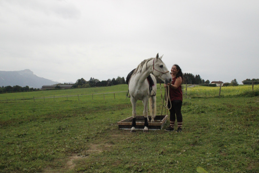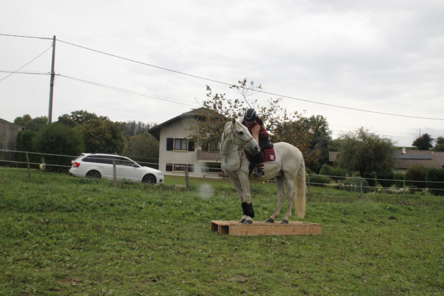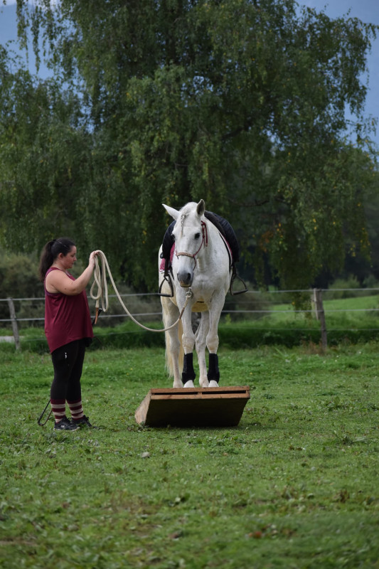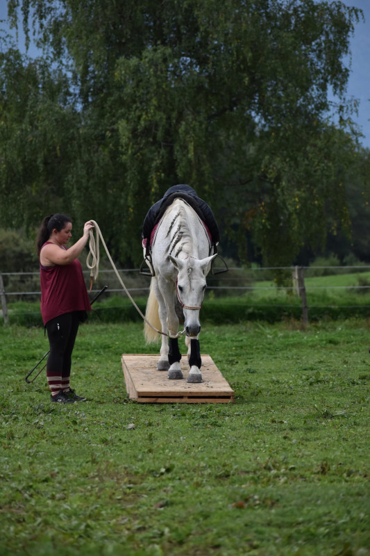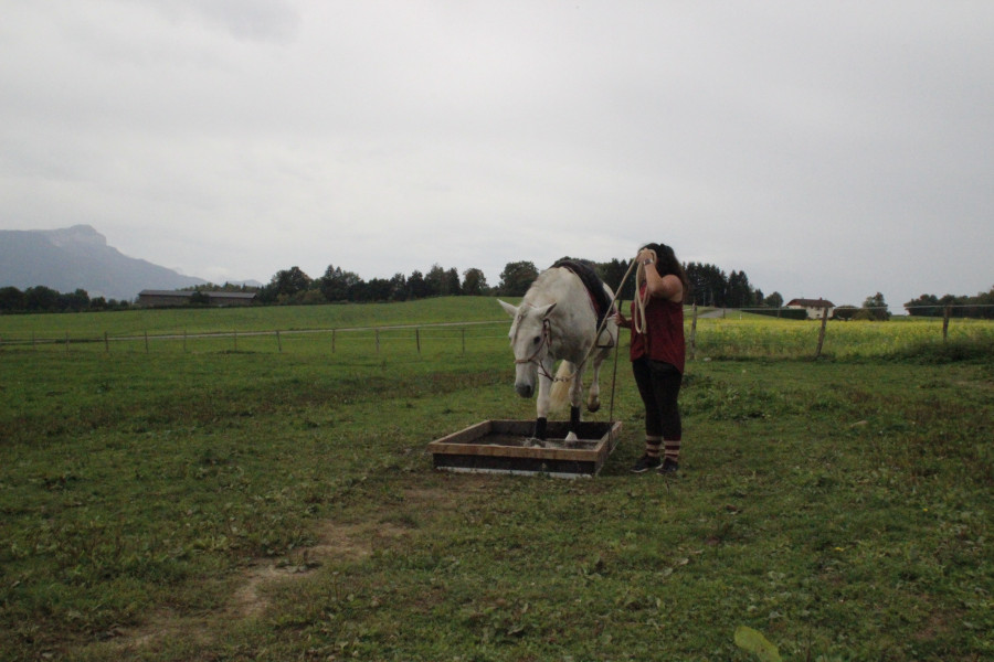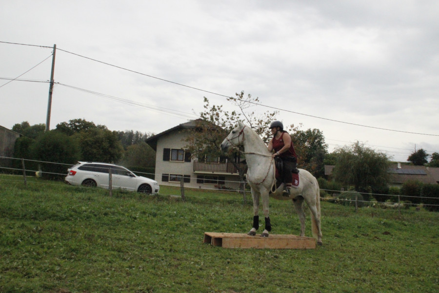 - montoir avec exo d'appeler le cheval au montoir puis faire faire un cercle autour et re appeler au montoir, nickel !