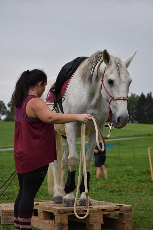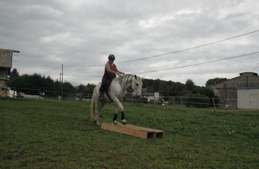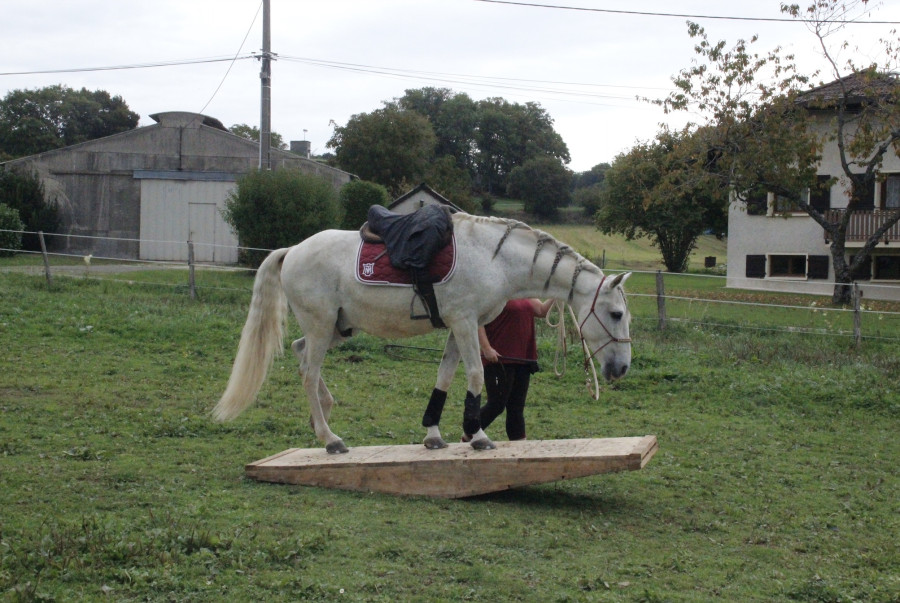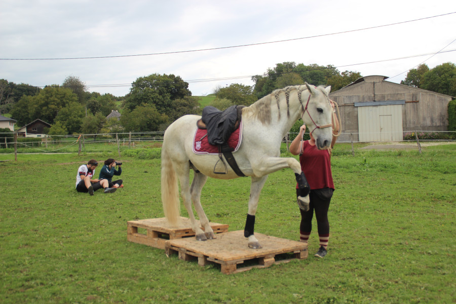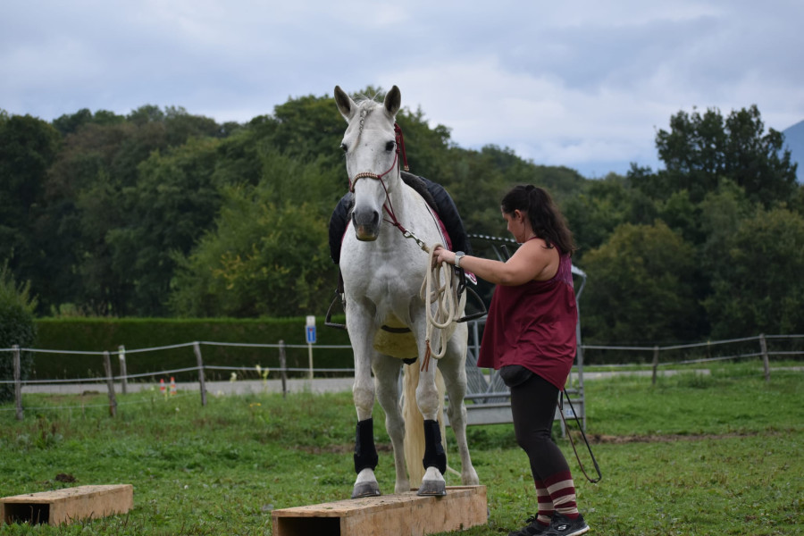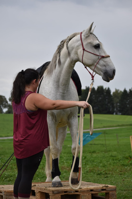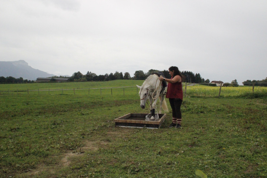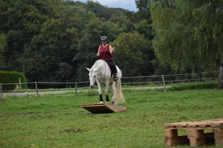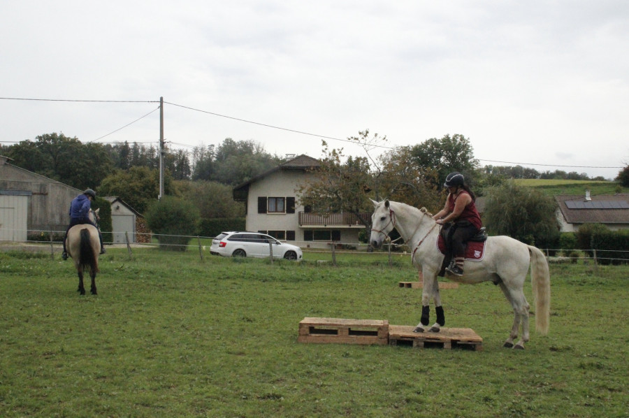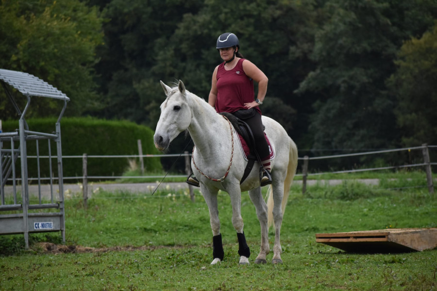 - montoir avec exo d'appeler le cheval au montoir puis faire faire un cercle autour et re appeler au montoir, nickel !