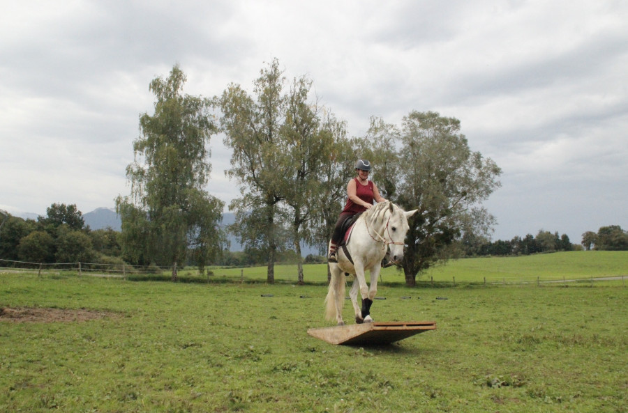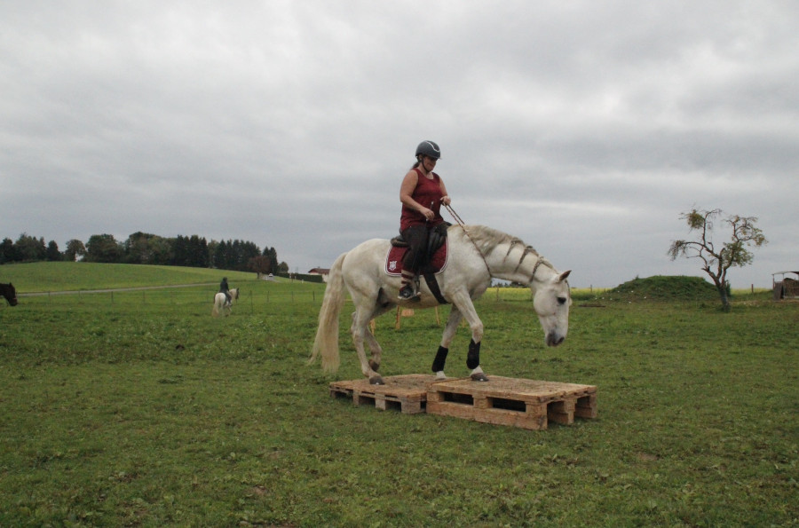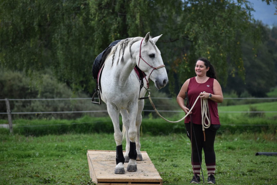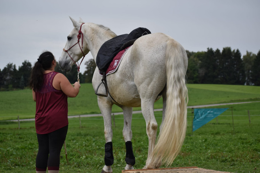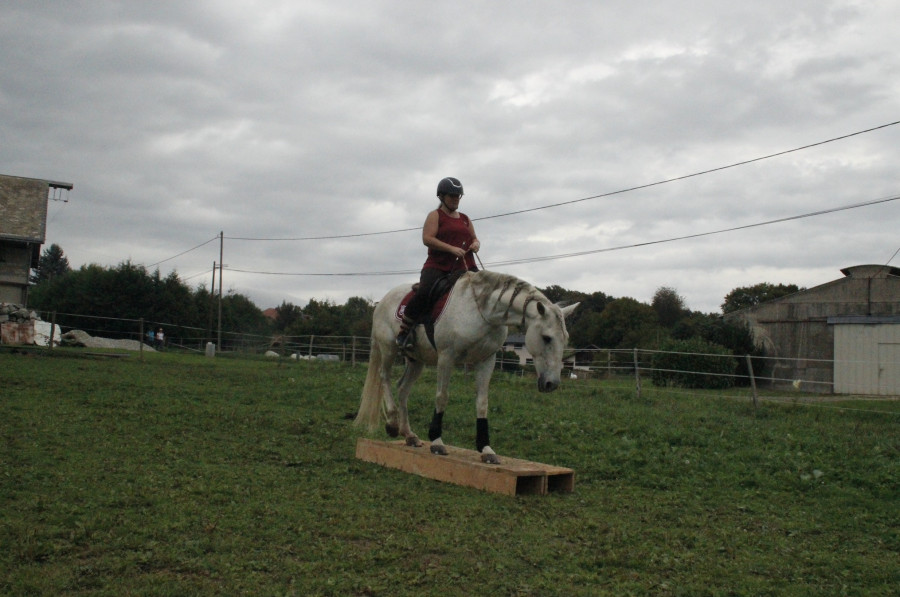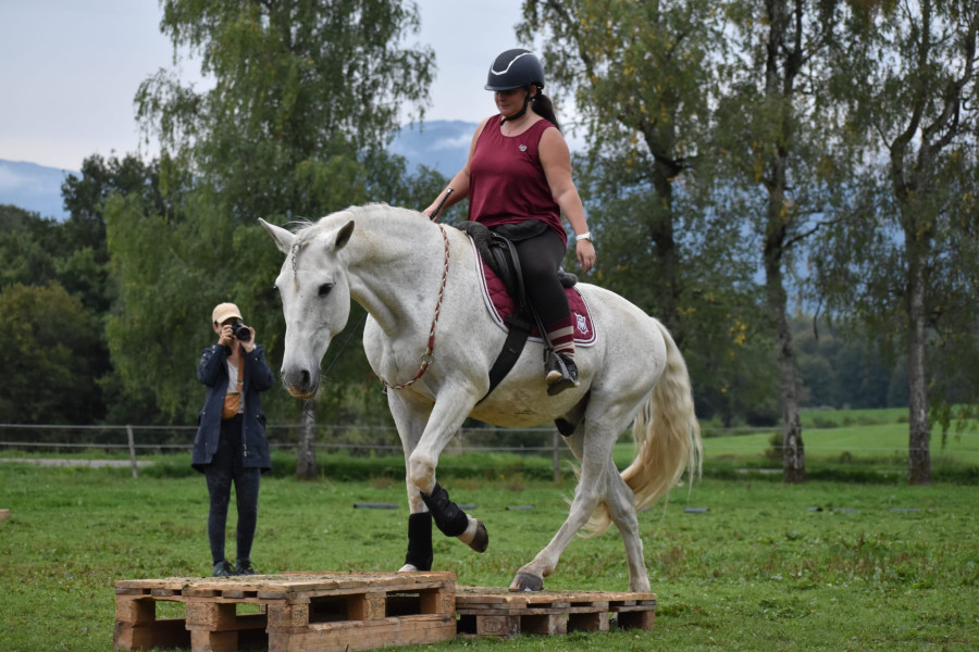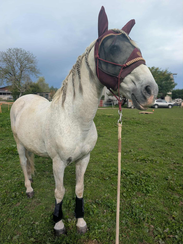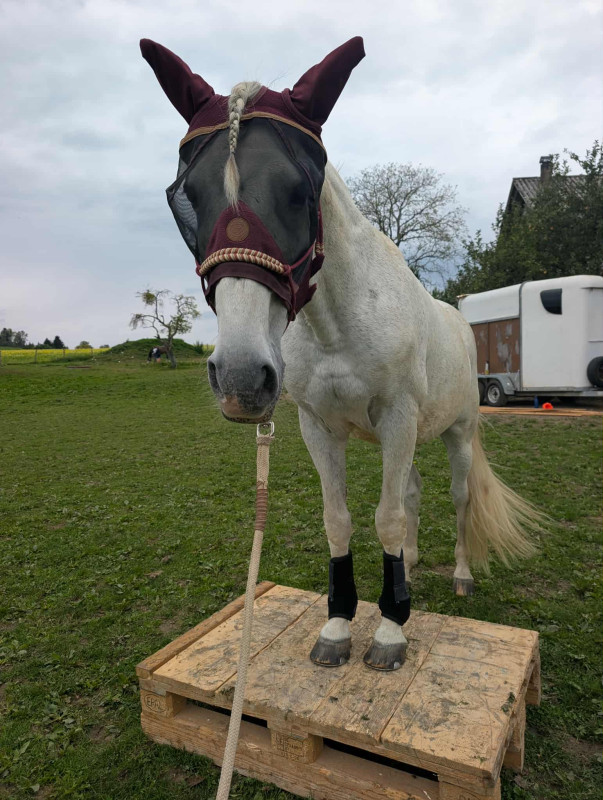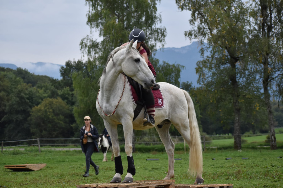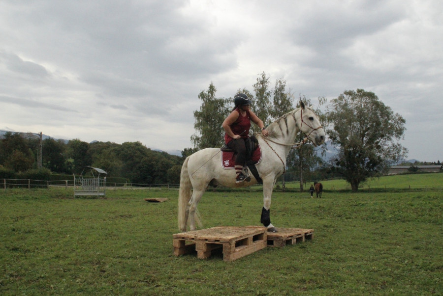 - montoir avec exo d'appeler le cheval au montoir puis faire faire un cercle autour et re appeler au montoir, nickel !