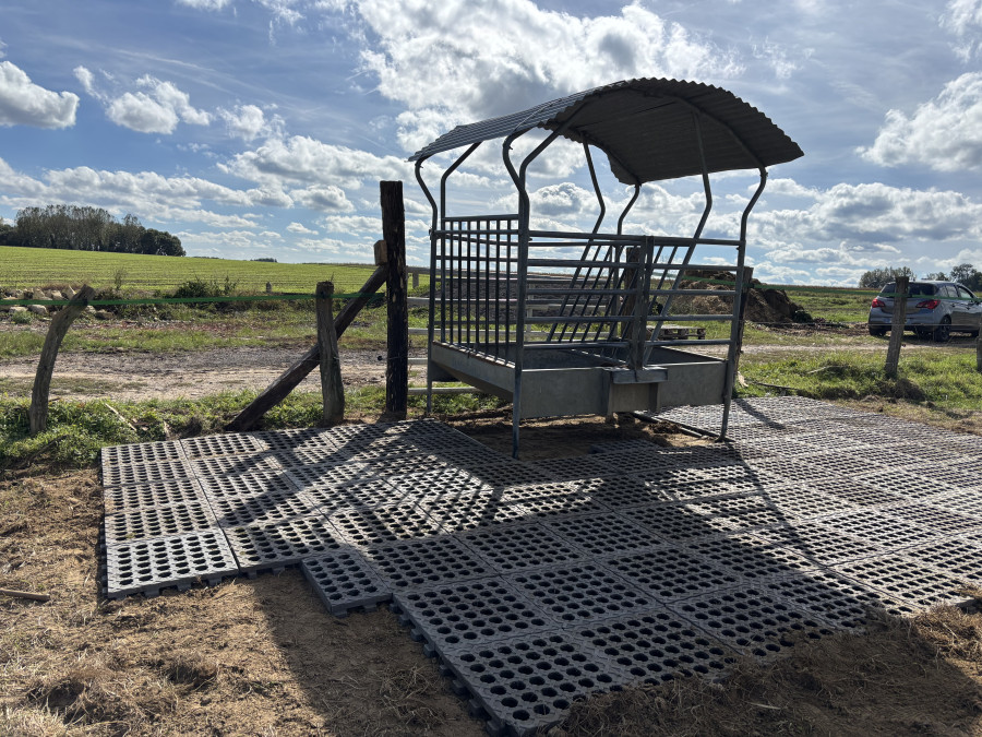 Aujourd’hui pas de poney car c’était pose des dalles dans la pâture d’hiver . Très contente du résultat . À voir si il faut recouvrir de sable mais je suis vraiment contente.