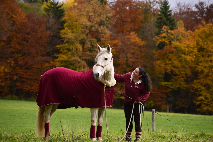 Il faut aussi qu’elle bouge à raison de 3 fois par semaine mini avec du trot et du galop même si que une heure, une balade active .