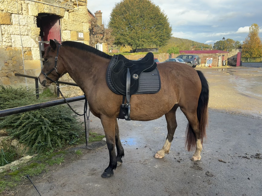 Sinon photo de ma mémère hier ! Je trouve que depuis le changement de selle elle a éclaté des épaules . Comme dirais la nutritionniste elle a du welsh cob c’est indéniable (ce qui explique aussi sa morphologie et elle me disait que les welshs étaient plus succeptibles d’être SMe que d’autres races).