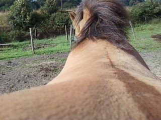 Pein de reflexions, car le poney est gros (en même temps il n'a pas travailler depuis x temps, et je n'avais pas de carrière avant alors c'est sur il va pas perdre en un jour, et puis un fjord ce n'est pas toujours tout fin.), car j'ai, malgrès mes huits années à cotyer les chevaux, un niveau bof, et lui il est mieux avec des niveaux supérieurs...