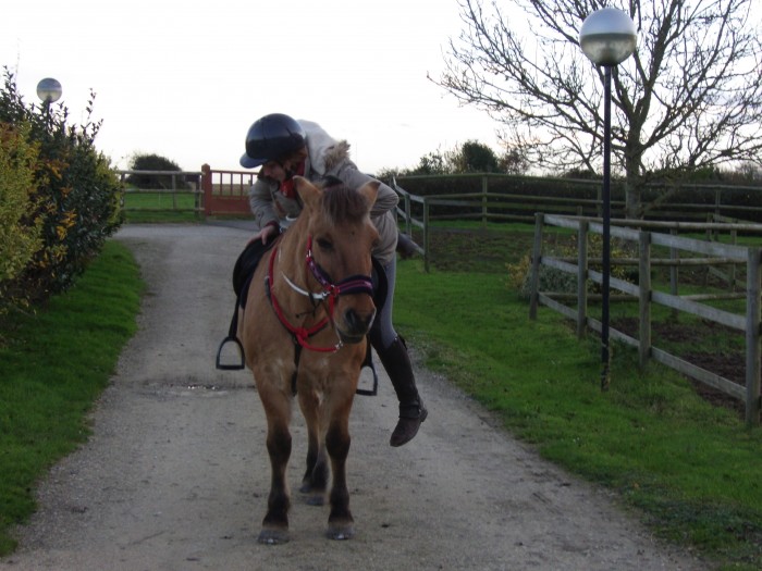 Pein de reflexions, car le poney est gros (en même temps il n'a pas travailler depuis x temps, et je n'avais pas de carrière avant alors c'est sur il va pas perdre en un jour, et puis un fjord ce n'est pas toujours tout fin.), car j'ai, malgrès mes huits années à cotyer les chevaux, un niveau bof, et lui il est mieux avec des niveaux supérieurs...