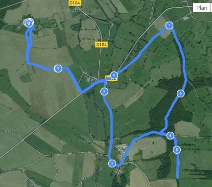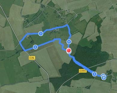 Il y avait bien un chemin dans le temps mais l'entretien n'a pas été fait depuis des siècles et il est impossible de passer (c'est une allée bordée d'arbres). D'un côté il y a un pré cloturé (dont l'entrée est à l'endroit où s'arrête le chemin praticable) et de l'autre un champs cultivé, donc j'ai dû faire demi-tour.