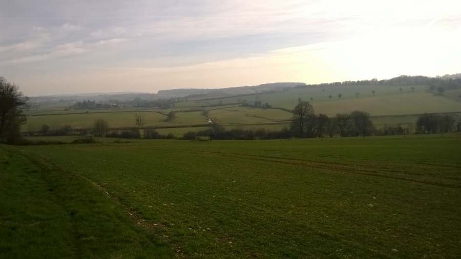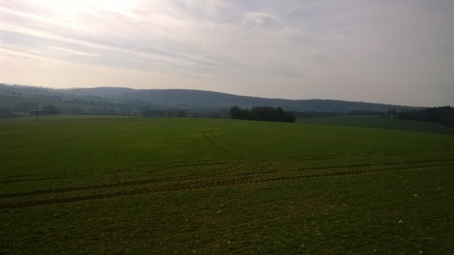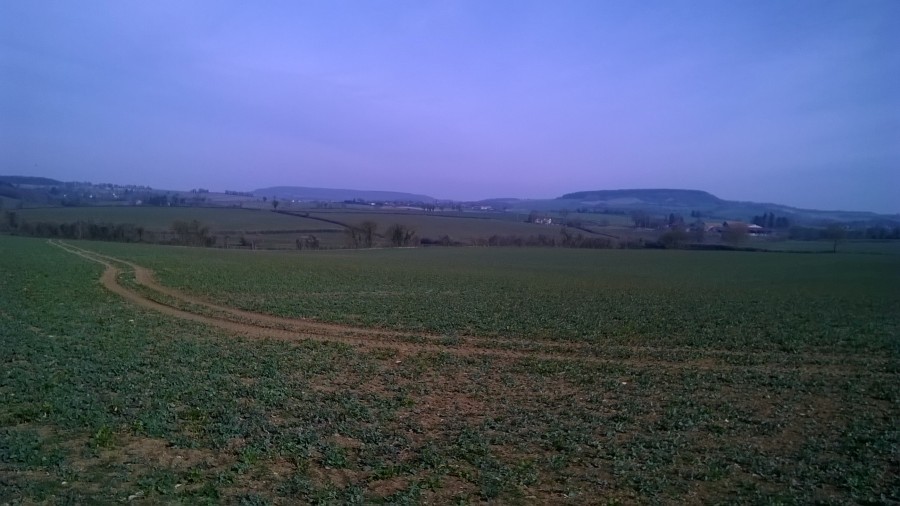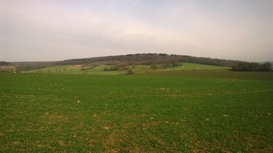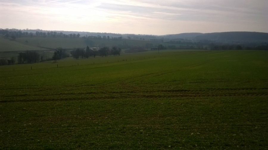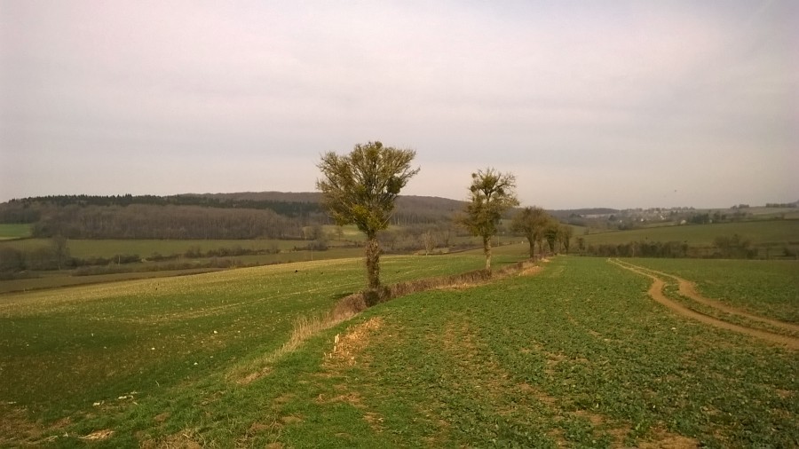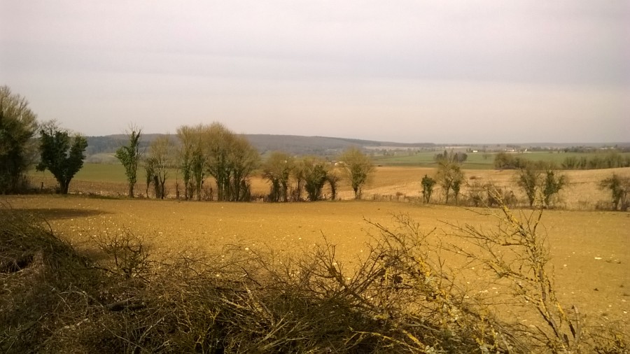 (je suis passée sur le chemin qu'on devine juste en dessous de la lisière du bois, là où il y a deux rangées d'arbres, c'est la partie de la balade juste après le km n°5)