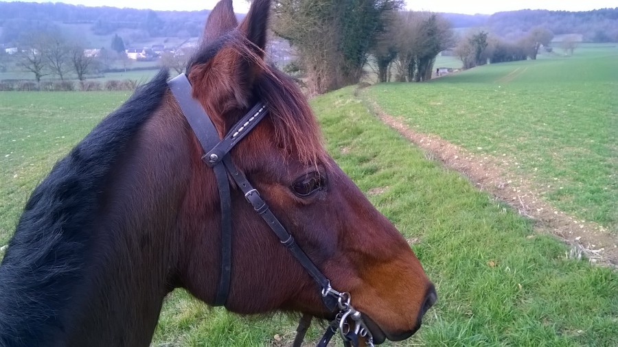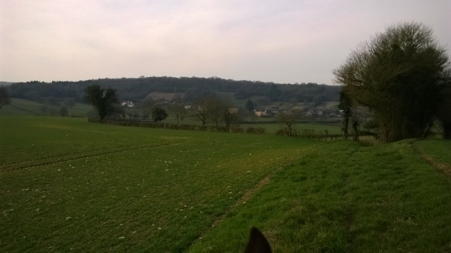 Puis sinon au galop il m’a fait un écart mais je l’ai senti venir, il a eu peur d’une souche d’arbre sur le bord du chemin.