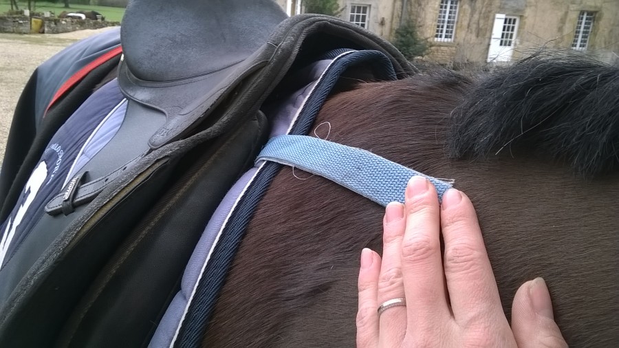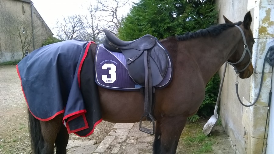 Bon évidemment j'ai pas mis d'amorto, j'ai mis le tapis, j'ai sanglé progressivement... puis en fait ça avait l'air pas trop mal alors zou, j'ai monté avec!