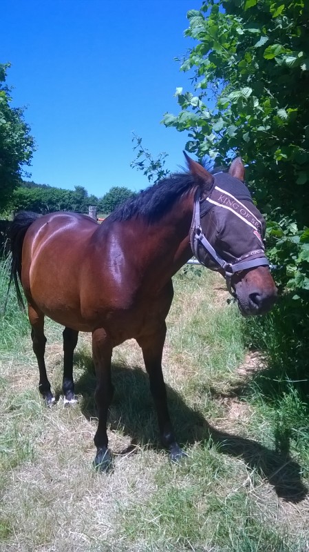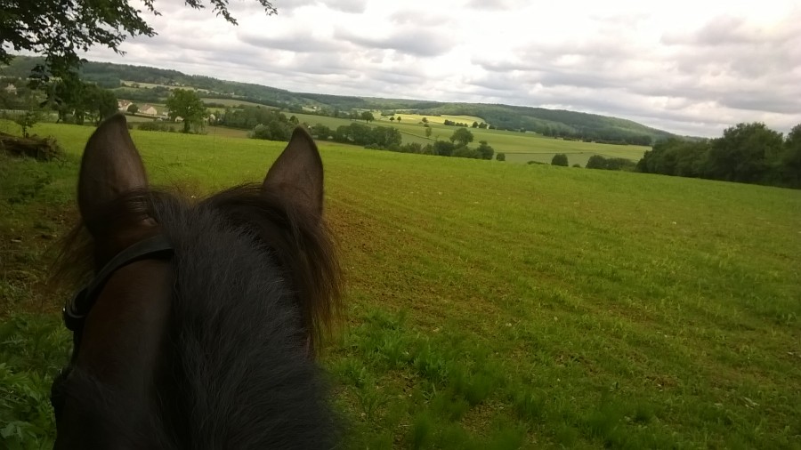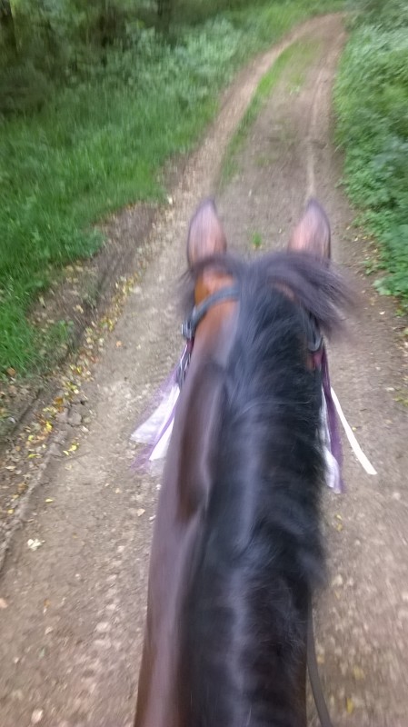 Fermer les doigts sur les rênes suffisait pas pour avoir une action digne de se nom, il fallait insister du coup j'ai tiré un peu à la détente. Bref j'ai quand même réussis à l'avoir bien aux trois allure sauf au galop à droite il me faut un mors plus dur pour y arriver.