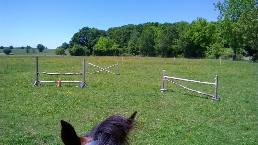 On détend sur un obstacle avec une barre à 6m, Up saute bizare, enfin non Up ne se force pas jusqu'à l'oxer à 1m... Après on saute un peu tout, ça va, ça pourrait être pire ça pourrait être mieux.