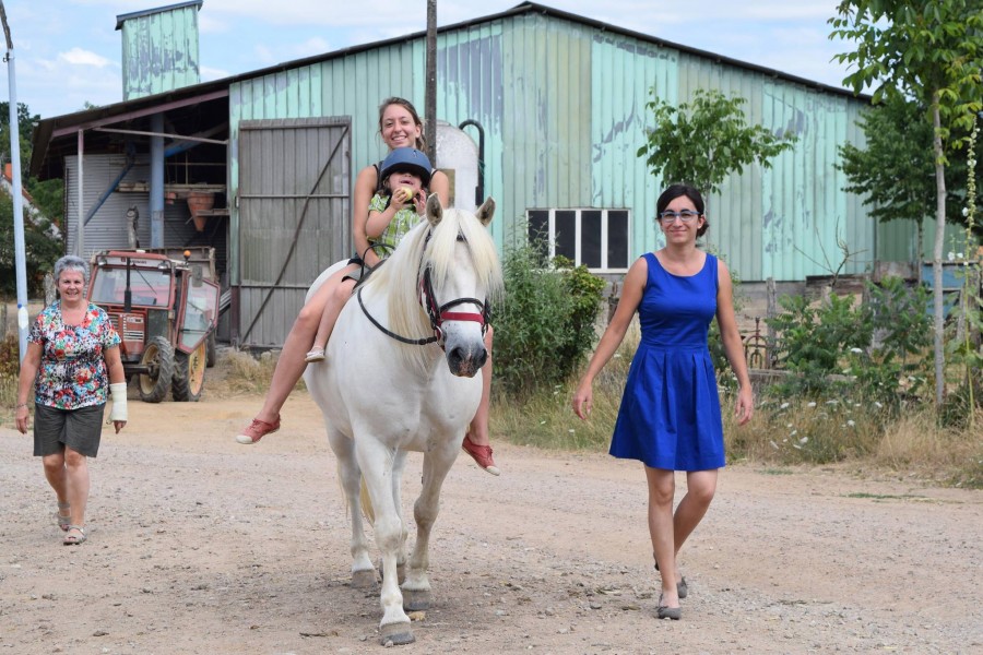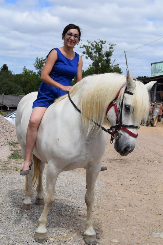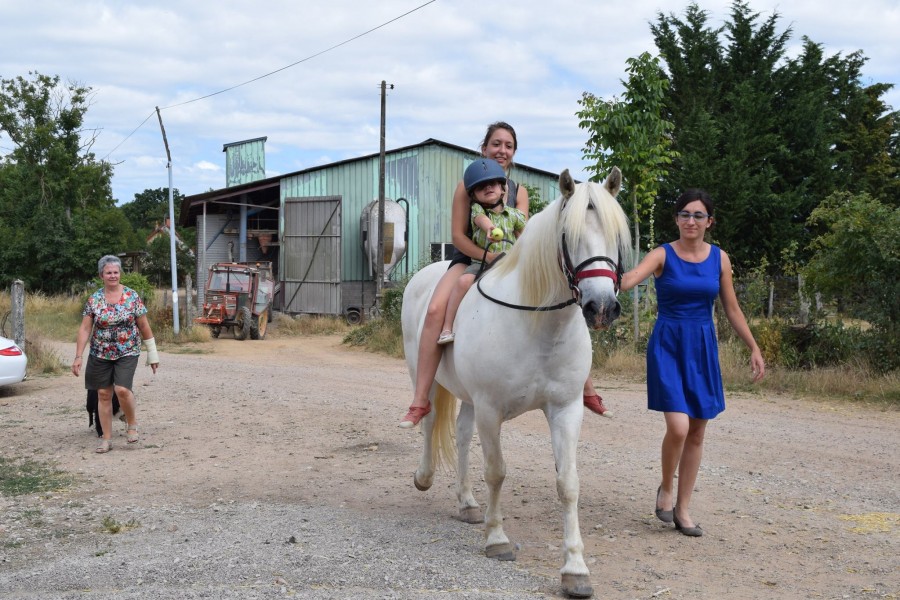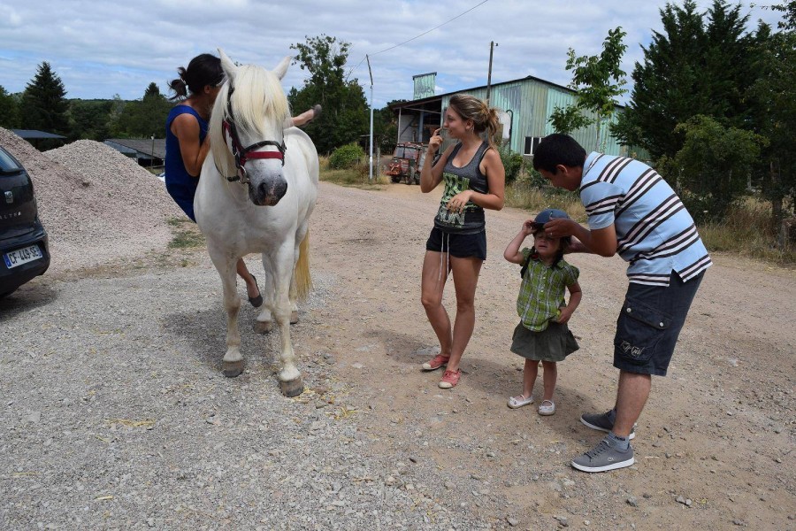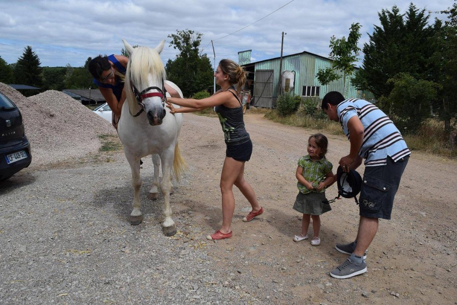 Du coup après le repas on s'est un peu occupés de Jasper. J'ai mis la cousine à cheval (c'est elle qui s'occupe de lui la semaine, elle le panse et l'emmène un peu se promener en main mais elle monte pas trop) pour qu'elle puisse faire des petites balades par la suite. Ma fille est aussi montée dessus pour faire un petit tour de 10 minutes.