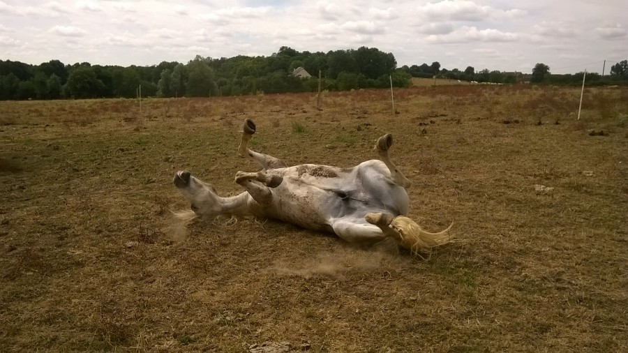 Kiwi était tellement occupé à renifler tous les crottins qu'il ne s'est même pas roulé!!