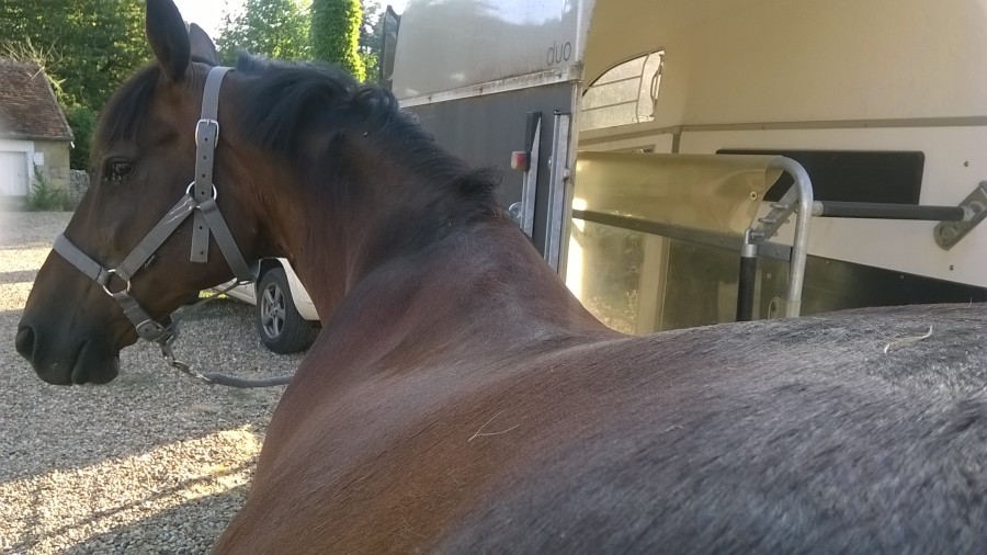 Je suis partie 10 minutes le long du canal galoper un petit coup! Et au retour je suis allée le baigner dans la rivière (ça lui arrive aux genoux)