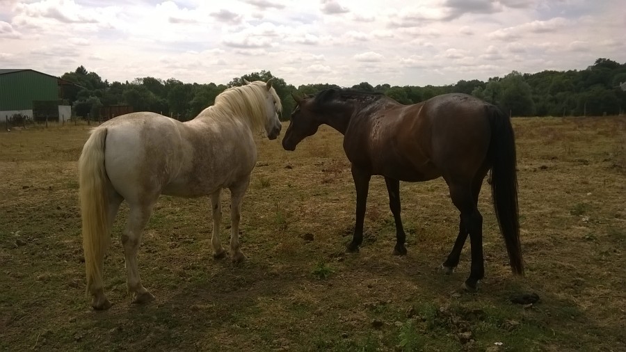 Pour commencer, samedi soir après le boulot je suis passée voir les chevaux, leur remettre de l'eau et vérifier si pas de bobos (ma cop est partie en vacances 8 jours).