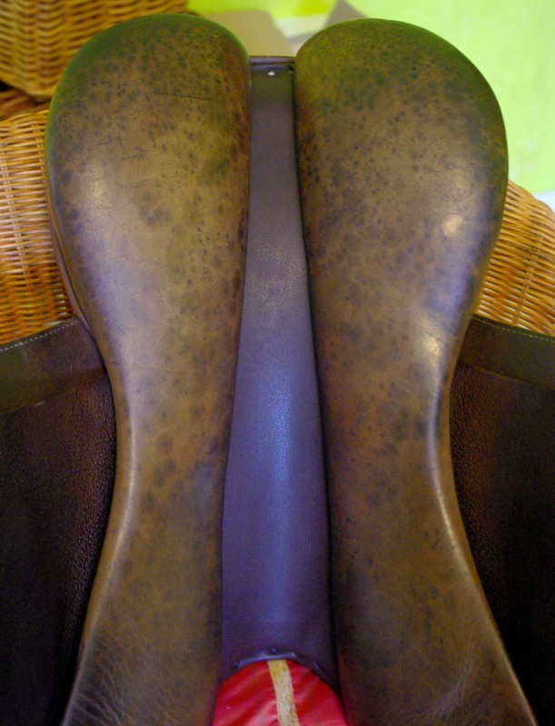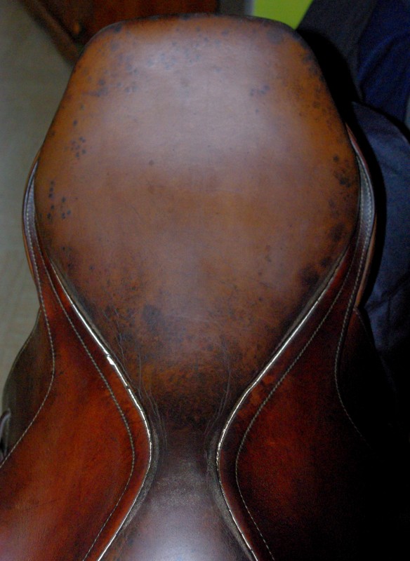 Non, mon cuir n'est pas sec du tout, et selon la bourrelière le problème de cette selle c'est qu'elle a été trop graissée dans le passé, d'où les taches de moisissure