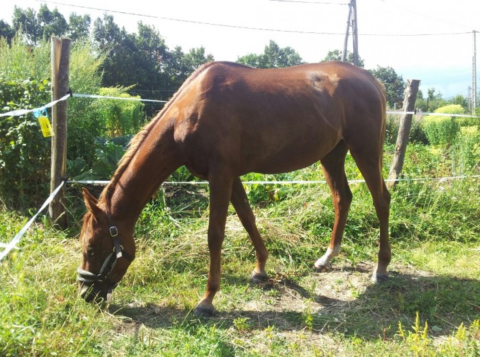 Du coup elle se retrouve avec 2litres de floconnés + 3 gros plis de luzerne/jours. Je trouve ça énorme sachant qu'elle doit mesurer 1m45. De plus, je l'amène broutter au moins 1h/jour. Et elle ne grossit toujours pas.