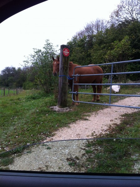 Un autre jury est venu me chercher pour l'épreuve du van, je ne savais pas qu'on enchaînait donc je faisais brouter Cajo dans un coin plus calme (sachant que c'était le jour de la fête du cheval donc il y avait des démo partout). Du coup on a papoté en retraversant tout le terrain sur le mental, l'éducation... Et on a parlé de mes problèmes avec le van, j'ai demandé si la friandise était autorisé : "oui mais elle enlève des points" m'en fout moi je veux juste qu'elle monte, Cajo a joué au kangourou quand on a croisé des ânes attelés avec des grelots, je crois qu'elle jouait a se faire peur vu la tête qu'elle avait...