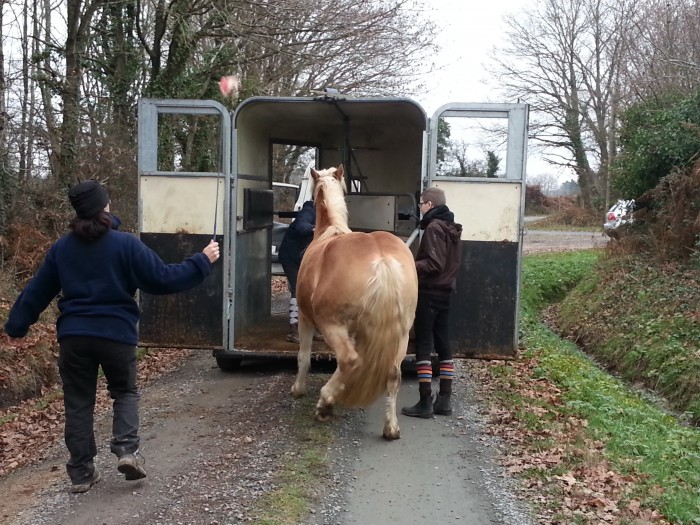 Elles sont venues à deux et avec un van de poulinières comme ça plus de place. Mais mademoiselle Cannelle n'avait pas du tout envie de monter.