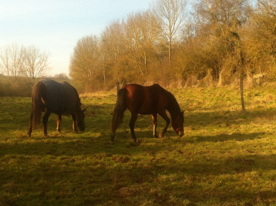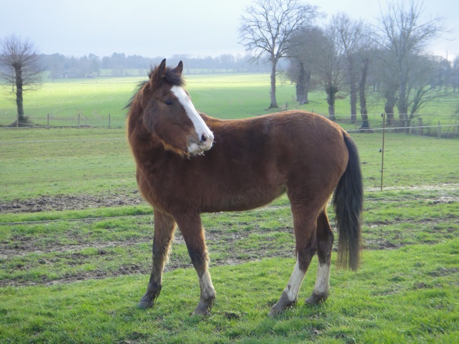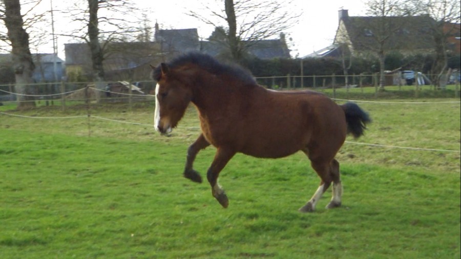 Comme je la sentais motivée, j'ai tenté un cercle en liberté au trot, elle avait une super attitude. J'ai félicité à la voix très très fort après ce seul cercle tellement elle y a mis du coeur (et de l'estomac), mais elle a pas eu son bout de pomme comme j'en avais plus.