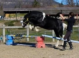 vodka Elle s'est bien améliorée ta Cajo à l'obstacle, tu as travaillé ça comment ? Le mien a une super technique (beau geste des antérieurs, il monte les épaules et le garrot et les postérieurs passent bien) et il est très franc mais il ralentit toujours au dernier moment pour regarder la barre, le nez au sol, alors c'est compliqué quand on est dessus, à part à le routiner sur des barres au sol je ne vois pas trop de solutions et dès que c'est trop petit il enjambe ...