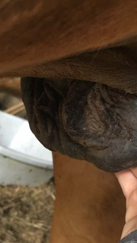 Sinon voici une photo de la peau , NETTOYEE ! Je tiens a preciser ! C'est quand j'ai enlevé tous le liquide degueu et on voit que la peau est atteint ! Donc la on voit la partie facile a montré mais de sur , je peux rentrer 2 doigt en entier , et je sens encore que c'est visceux donc ca doit etre comme sa jusqu'a tres loin ...