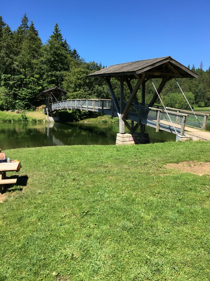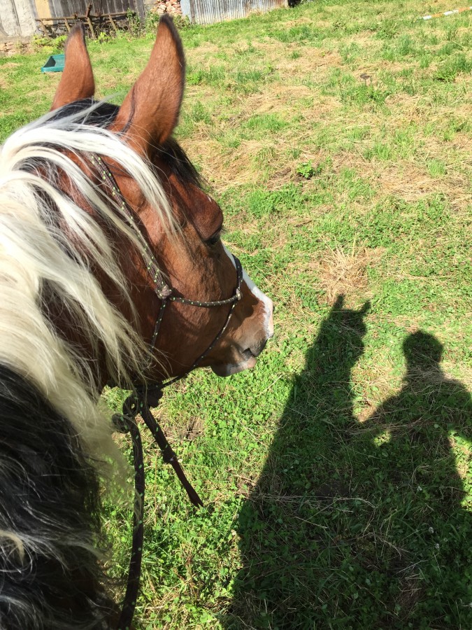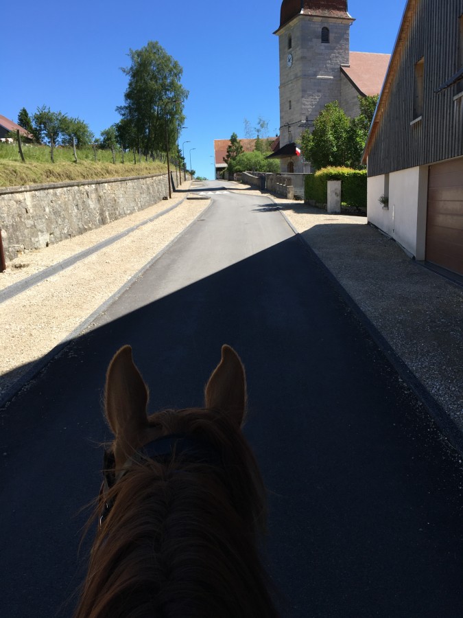 On est partie sous un manifique soleil avec une autre jument ! On a traversé 5 villages , fait de la foret , on s'est baigné dans le lac !