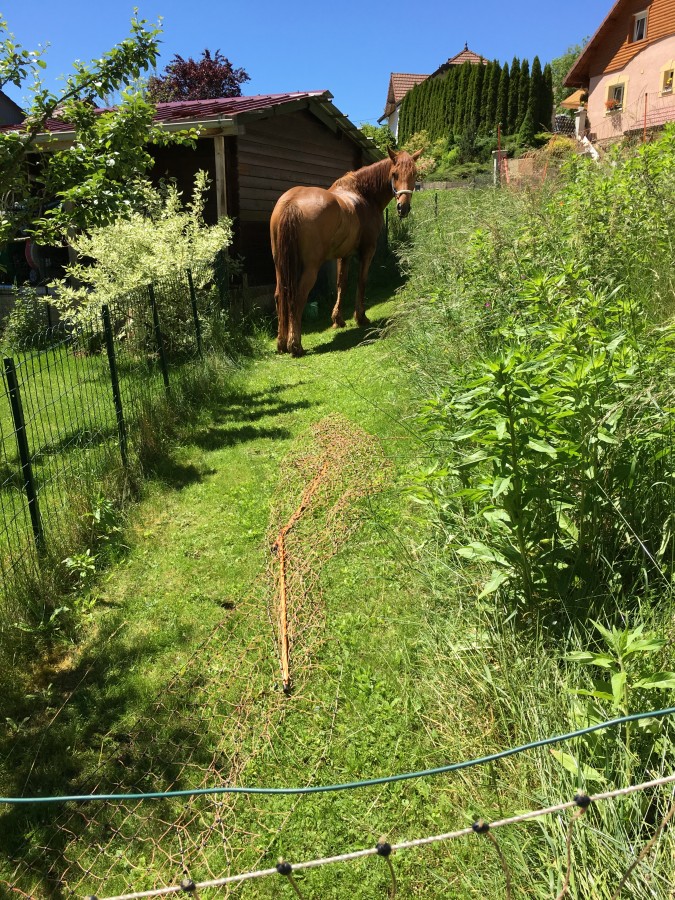 Mon pere etzit content , il a mangé tout le talus d'herbe et a epargner les fleurs qui poussaient autour ! Trop pratique ce loulou !! Par contre il a rien voulu boire ....