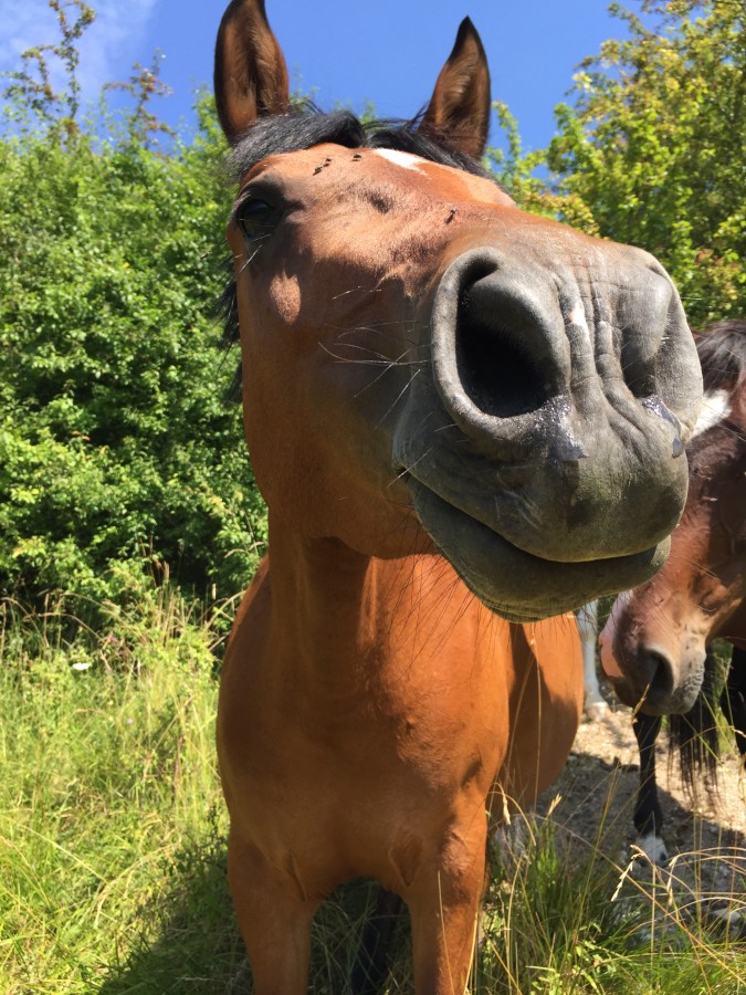 Ici Cheyenne glande toujours au pré... Crevasses toujours présentes, peau hyper sensible autour de la bouche mais elle a la forme ( et les formes aussi d'ailleurs).