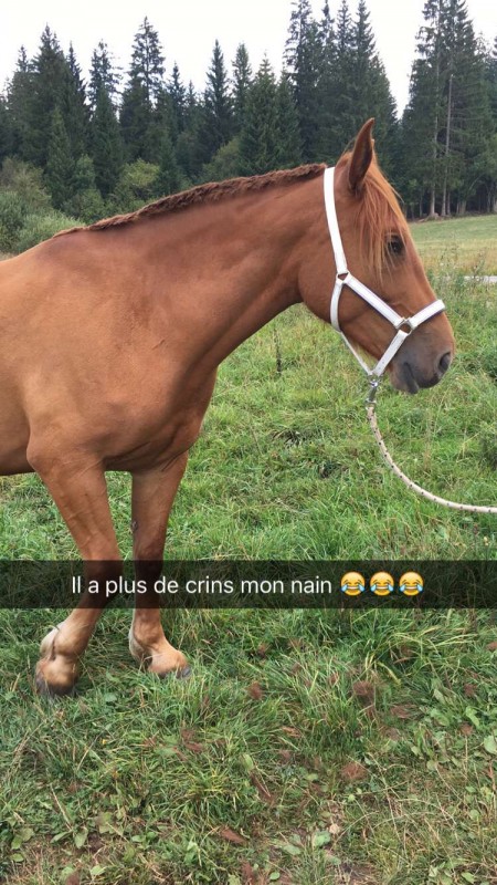 nous concernant, choca a profité des enormes étendues dherbe qu'offre cette pension magnifique ! il est actuellement en troupeau de 17 chevaux ! donc il a pas mieux pour lui ! on travaille toujours en discontinue , meme si on avait repris les cours pendant 2 mois , à raison dun cours par semaine ! il a eu une periode ou il sortait du champs 3 fois par semaine et ca lui faisait du bien ! on improvisait une carriere à l'aide de plots , comme on pouvait et roule !