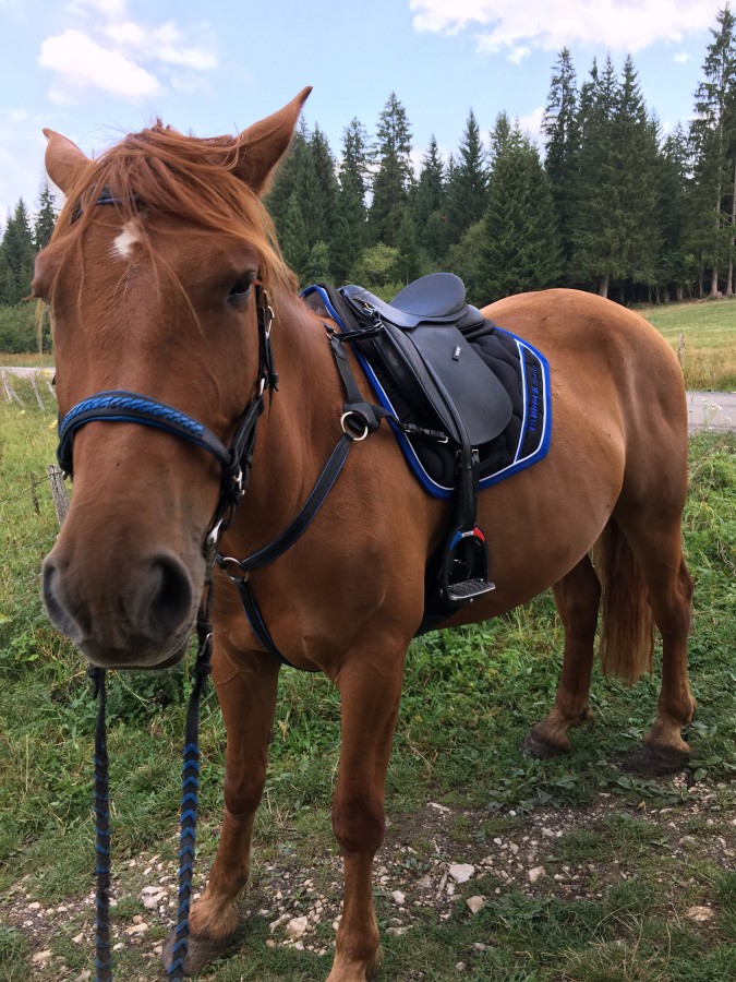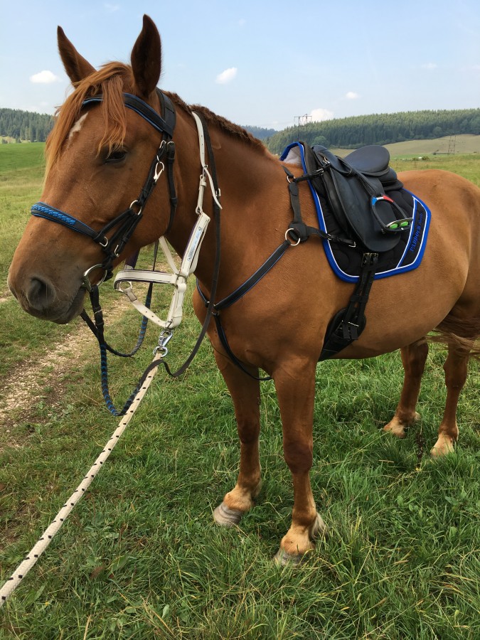 on a changé aussi pas mal de materiel pour qu'il soit au mieux niveau confort meme si je ne tape pas dans le haut de gamme ! il aura bientot un nouveau side pull , un mors double brisure ect !