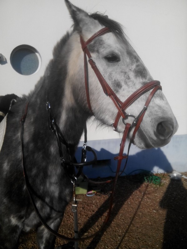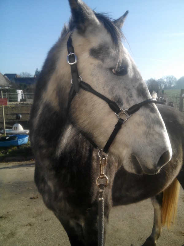 essaie du nouveau licol de cookaï son premier en cuire. ?