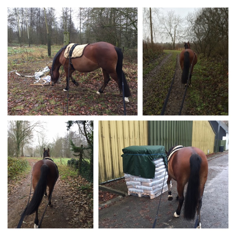 Le gros glande fortement, mais prend aussi de mauvaises habitudes car ce n'est pas moi qui m'en occupe la semaine depuis octobre à cause de mes études. Quand j'ai assez de temps je le sors seul ou avec ma jument, il a quand même fait des progrès sur certains points. Si je peux avec ma licence les loulous changent de maison pour quelques mois à partir de juin, avec débourrage juillet chez la mono qui vient à la maison habituellement. Ils seront au pré en troupeau (environ une dizaine) et je suis archi contente d'avoir un tel type de logement pour le débourrage, mais aussi pour ma jument qui sera avec d'autres chevaux plus âgés.