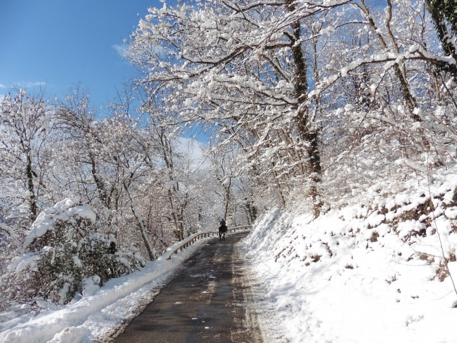 Les nôtres aussi, ils se sont mis au ski cette semaine. Mais avec la dégringolade des températures, on a choisi de couvrir. Une première pour le pie depuis sa naissance !