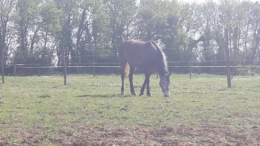 Une fois débarquée, je l'ai promenée un peu, je l'ai fait brouter et je l'ai laissé découvrir son paddock. Elle n'a même pas trotter ni rien, elle a fait le tour et ensuite s'est mise à brouter et elle est aussi aller rencontrer ses voisins de paddock. Elle était vraiment calme pour le coup, je sais que c'est dans sa nature mais je me demande quand même si elle a pas eu un petit coup de fatigue à cause du vaccin justement...