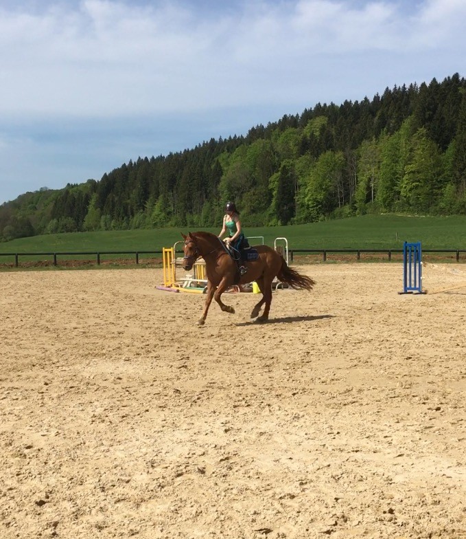 On a laissé là dessus , trempé le pauvre avec cette chaleur ! La monitrice l'adore en saut ! Elle dit qu il a sont petit trucs à lui vraiment bien !