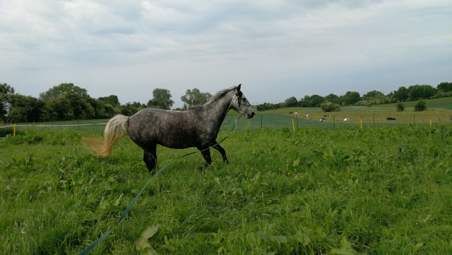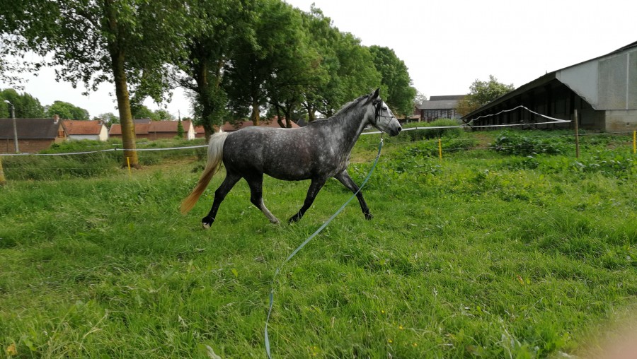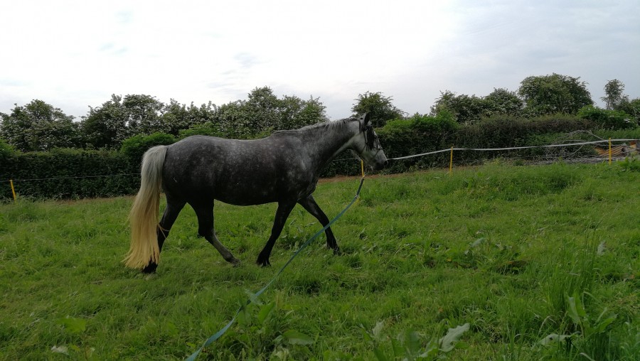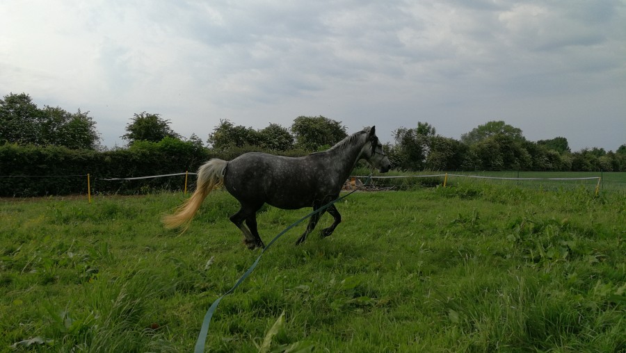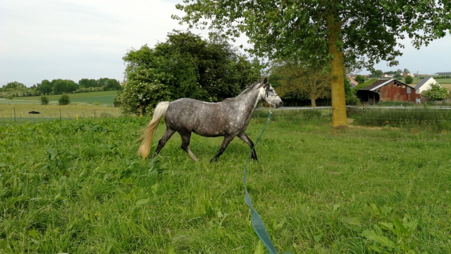 Il a été monté à 3 ans , monté 1 â 3 fois par mois maxi , plus une pause de 6 mois en hiver , et il bosse sérieusement depuis ces 4 ans 1/2 ! Et en plus je suis une crevette dessus par rapport à toi et la taille de ton cheval ! Même si je conçoit bien que c'est un cheval robuste !
