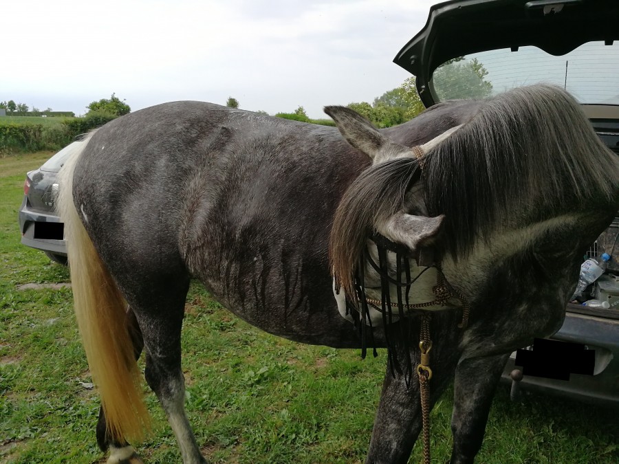 Ducoup je suis allée ce matin juste le voir , un coup de brosse , curage de pied , il souffre énormément de la chaleur .... et j'ai enlevé 6 tiques je suis folle de rage