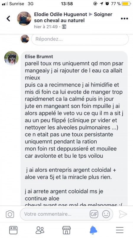 fidjicheyenne J'me permets de rebondir sur l'utilisation d'argent colloidal, c'est un produit que j'ai découvert en 2016 dans le parc où je bossais, ils s'en servaient pour absolument tout : plaies, problèmes digestifs, maladies type gastro/grippe chez nous ... et ça marche très très bien.