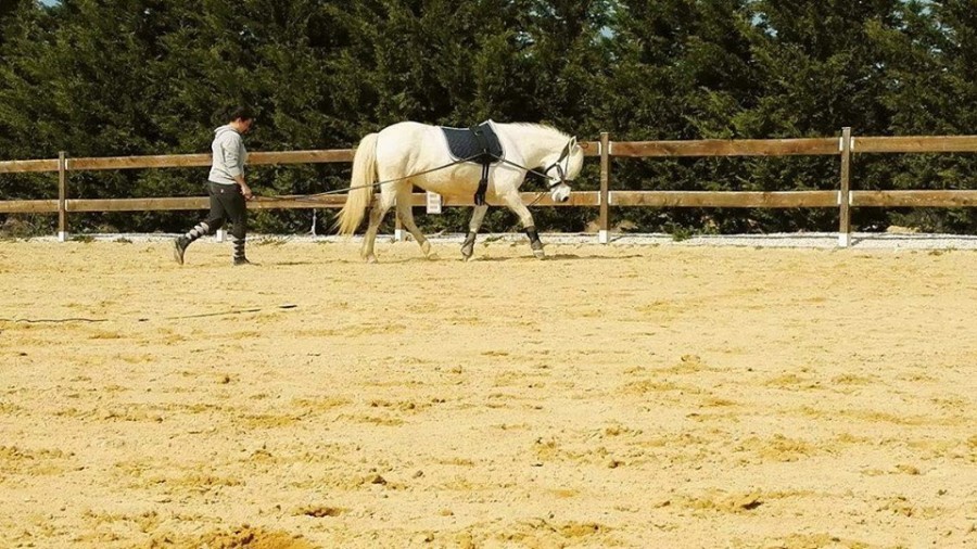 Du coup depuis novembre on a repris le travail tranquillement. On fait un peu de tout, travail sur le plat, travail à pied, longues renes, et même un peu de saut (deuxieme séance pour Vaya), je vous met quelques photos en vracs :